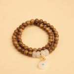 Vòng tay DANA Trầm Hương, Trầm tốc vườn 6li phối đá Cửu Vĩ Bảo Kim Trắng, 2 vòng