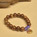 Vòng tay Trầm Hương, Trầm tốc vườn tròn mix charm mã não và đá lu thống khắc tâm kinh 10li, theo mệnh phong thủy