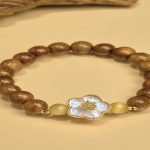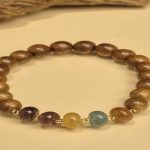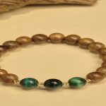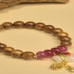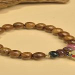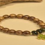 - Tên sản phẩm: Vòng tay trầm tốc vườn phối charm cỏ 4 lá 8 li kết hợp cùng đá tourmaline phong cách